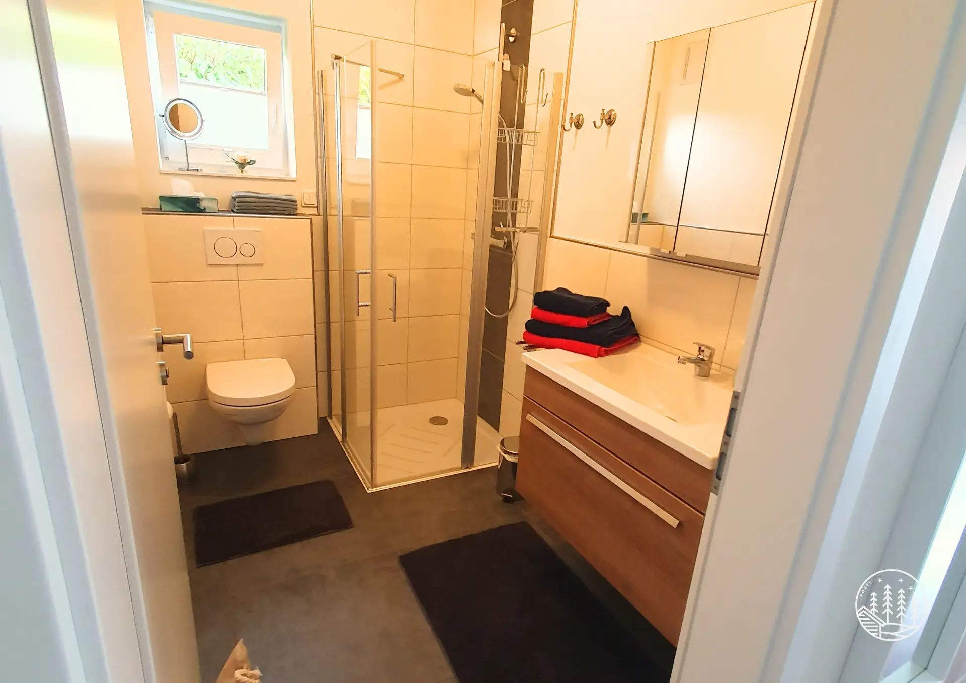 - Bad mit Dusche, WC und Fenster